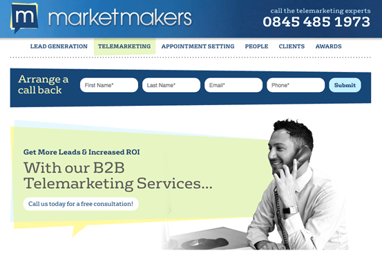 If you are using Adwords to generate leads for your service, I would suggest including either a call to action button, leading to your contact us page, on the page that customers land on, or including an enquiry form on the landing page itself like Market Makers below.