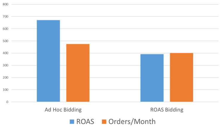 The boss decided that they needed a target ROAS and should be bidding upon hard numbers. The PPC team built a nice spreadsheet to manage the bids based upon a target ROAS and implemented the new strategy.