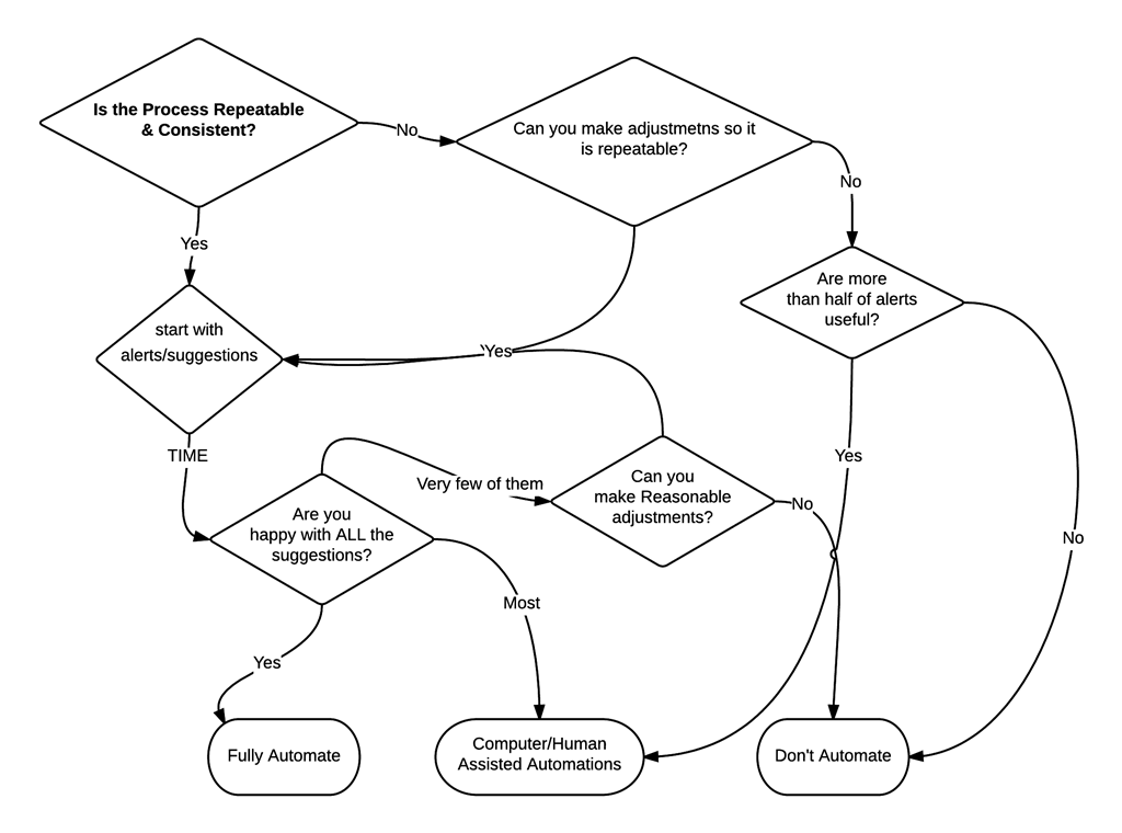 - With automation, you’re trusting the system to do the exact same thing over and over without any variation. If you don’t trust all the inputs, then you shouldn’t automate the process.
