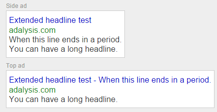 This is an example that happened to one company. They wanted to test adding a period to the end of description line 1 to see the difference between extended headlines (the long 70 character headline when the description line 1 is added to the headline) and having two different lines of text.