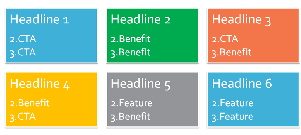 • Headline 2 & 3 are a mixture of features, benefits, and calls to action depending on what you are focused upon creating
