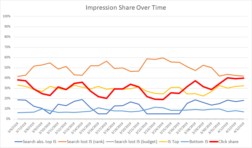 - The broad match keywords were also receiving so many clicks that their budget was now constrained (increase in Search Lost IS (budget))