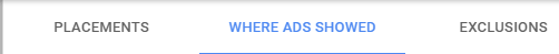 If you navigate to your placement data and click over to Where Ads Showed, you will see your data by where your ads were displayed.