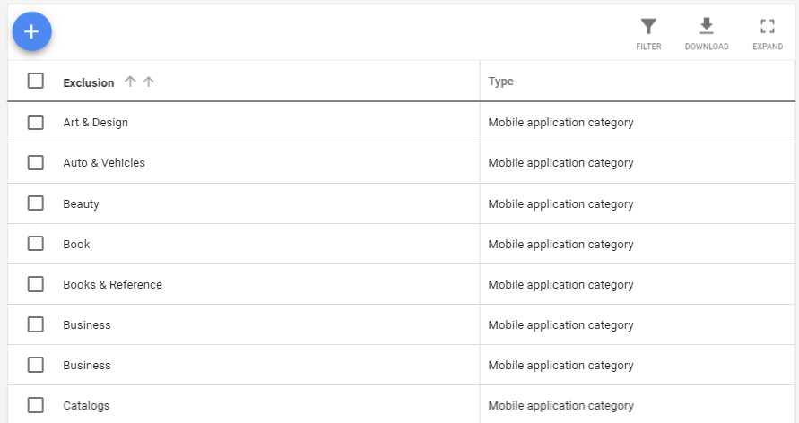 We chose apps where we had impressions, and yet Google states these are invalid parameters, so Google doesn’t easily give you the options to exclude some of these non-category apps.