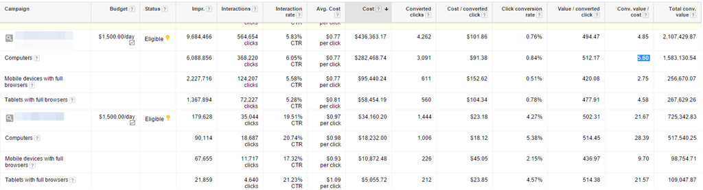 This is the danger in blanket statements and not segmenting everything before making decisions. There was a place mobile was doing well – branded terms. The competitors were buying this companies branded terms and as soon as this company stopped buying their own name  – they started losing a lot of branded traffic to their competitors on mobile devices.