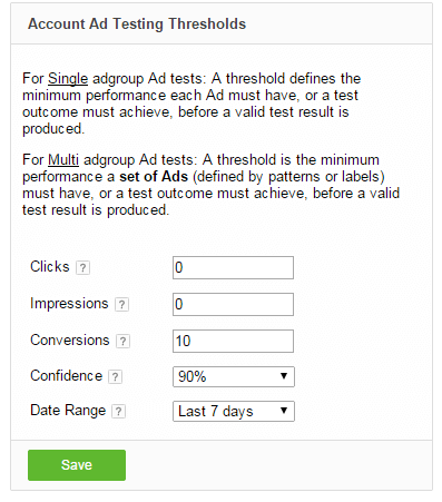 When testing ads, you often want to create minimum data requirements for some of your metrics before you even examine if a test has achieved statistical significance.