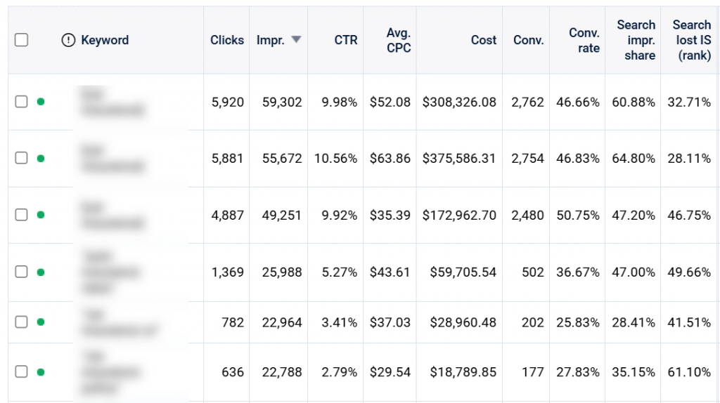 However, the most common reason for a higher impression share is a “max” bid strategy (clicks, conversions, or revenue). Since Search spends less budget on lost impressions, the bid strategy can increase your bids and lower your lost impression share.