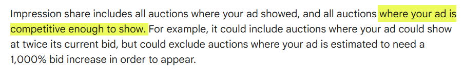 2. Impression share is only counted when your ad is competitive enough to show in an auction.