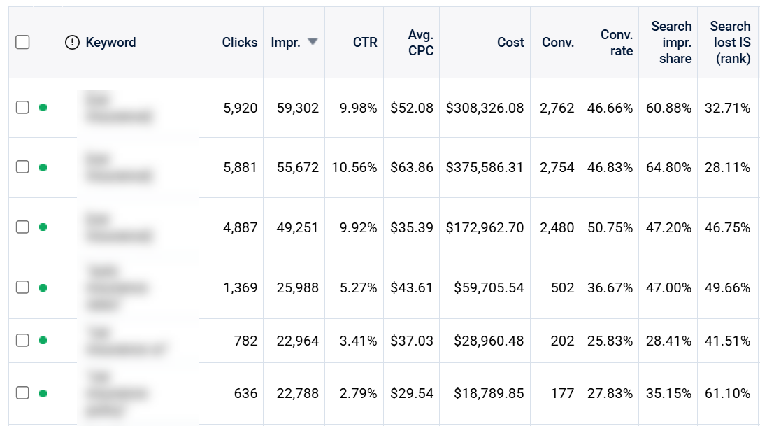 However, the most common reason for a higher impression share is a “max” bid strategy (clicks, conversions, or revenue). Since Search spends less budget on lost impressions, the bid strategy can increase your bids and lower your lost impression share.