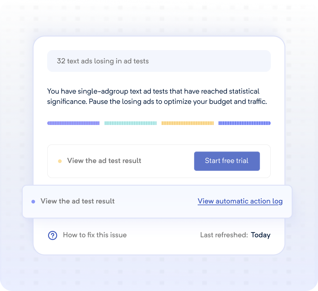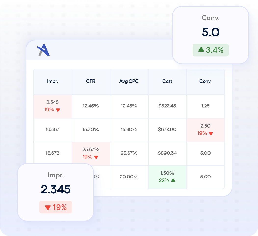 It’s time to make PPC management less complex. Get notified when performance changes unexpectedly, with alerts for fluctuations or threshold breaches across any metric. Daily monitoring helps you stay on top of every campaign without constant manual checks.