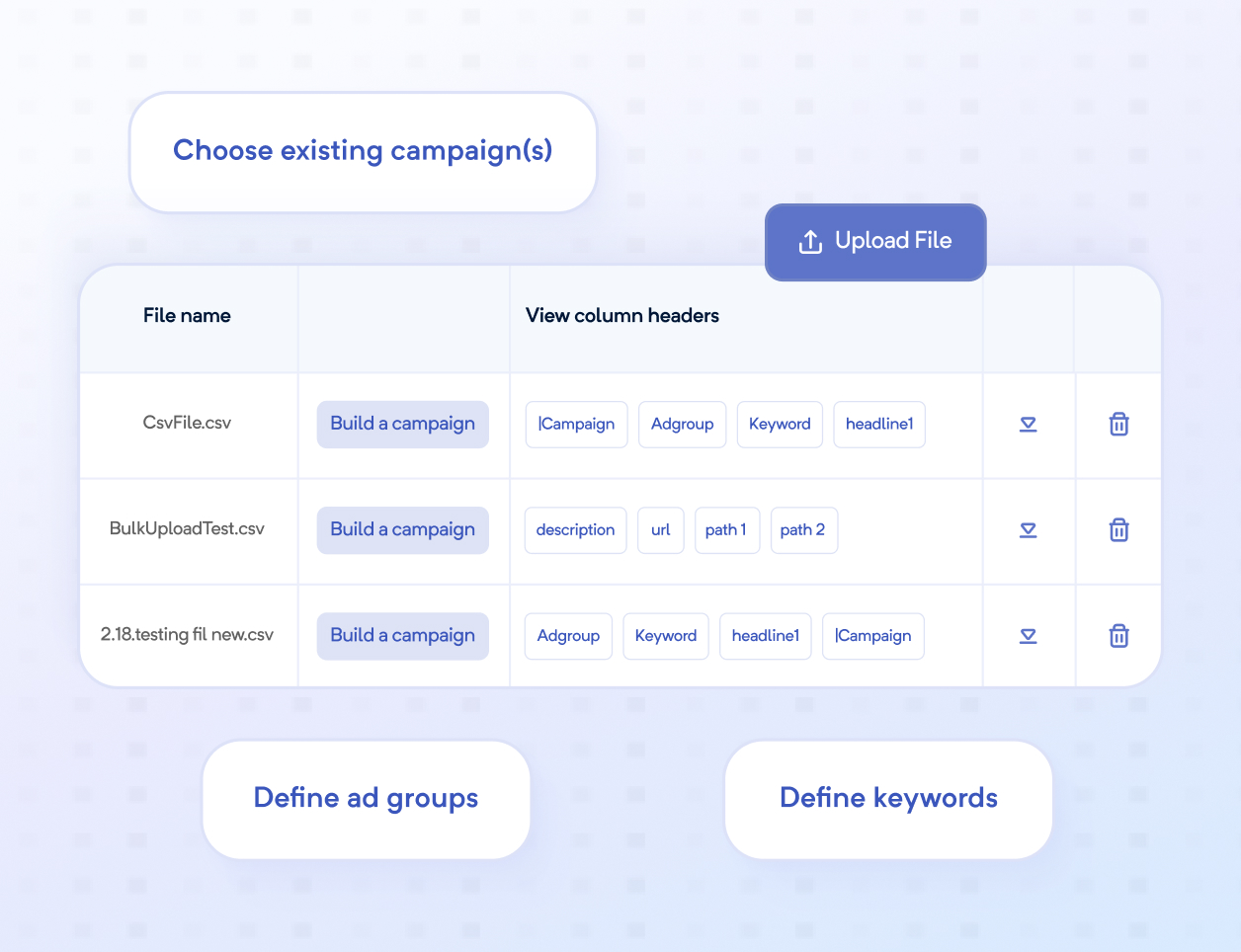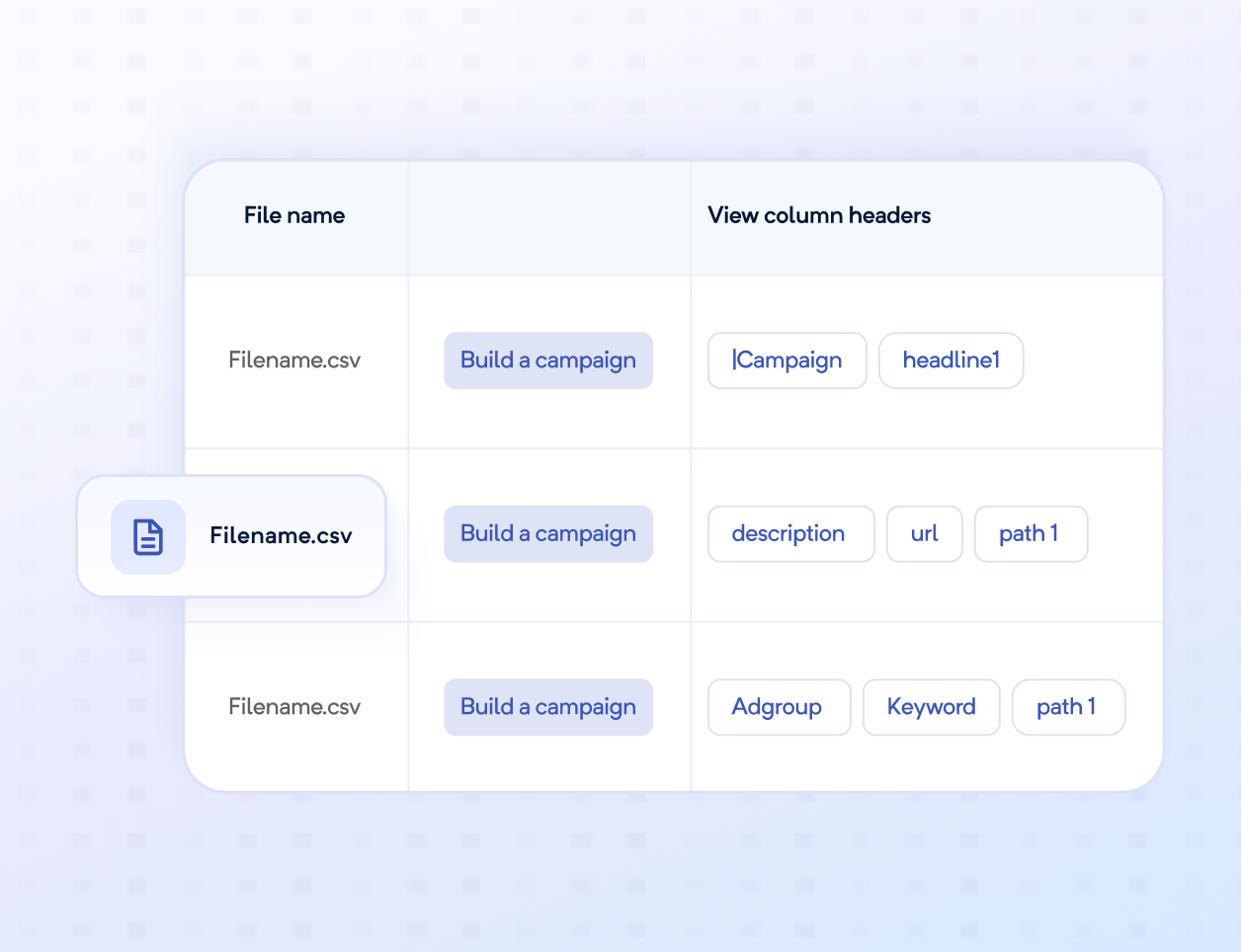 - Create hundreds of campaigns in seconds from data in uploaded files.